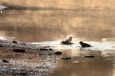 These two were enjoying an early morning bath. You might think I have removed the color and treated the photo as a sepia tone, but I haven't. What you see is the natural light that was present at the time.